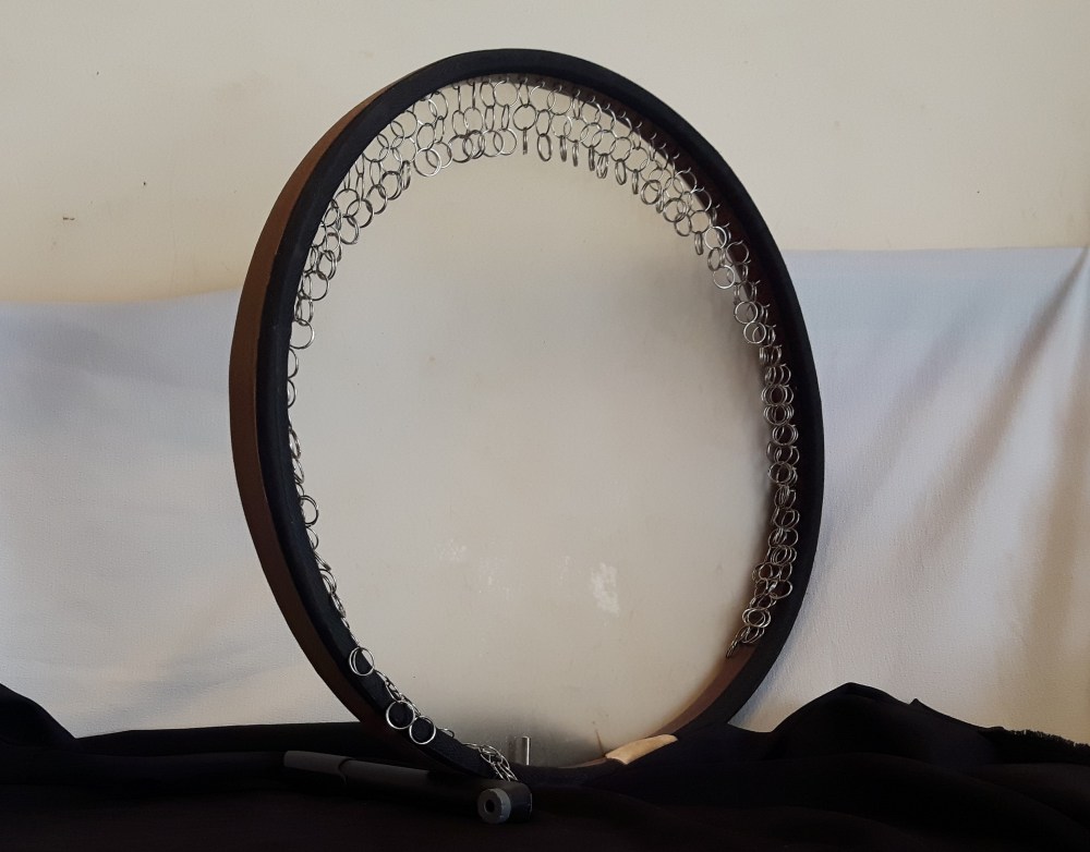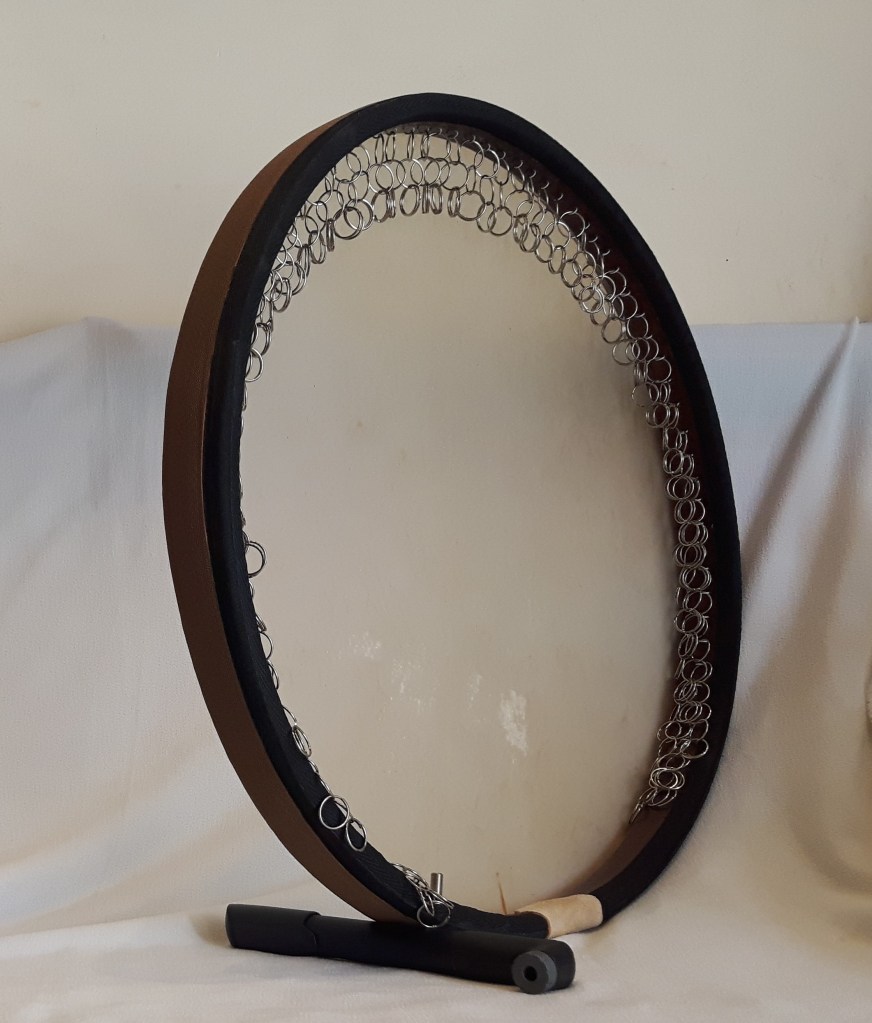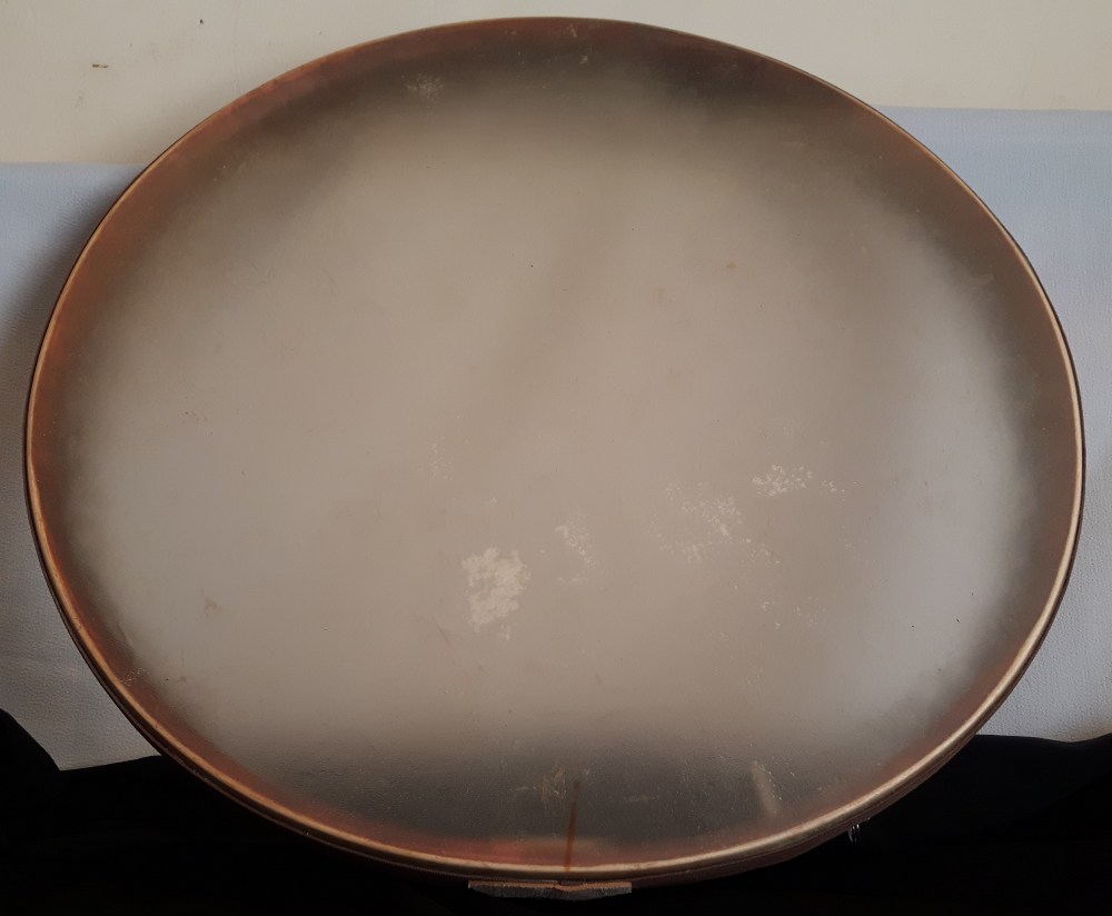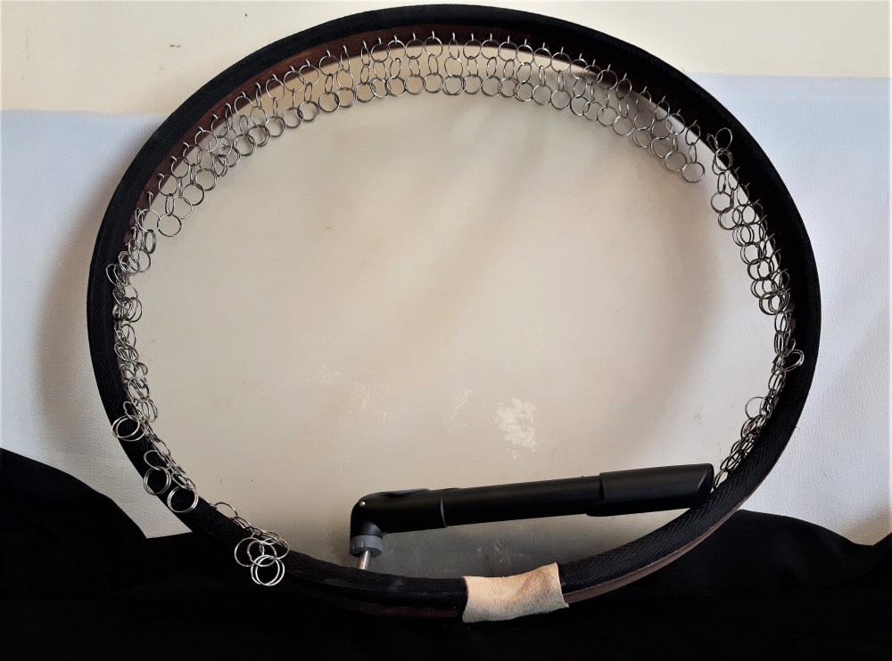 articles vendu- Dimensions : diam. 53 cm / larg. 5 cm\n\nType de peau(x) : peau naturelle de chèvre transparente\Bois : peuplier (léger) Système d’accordage : à chambre à air / à pompe