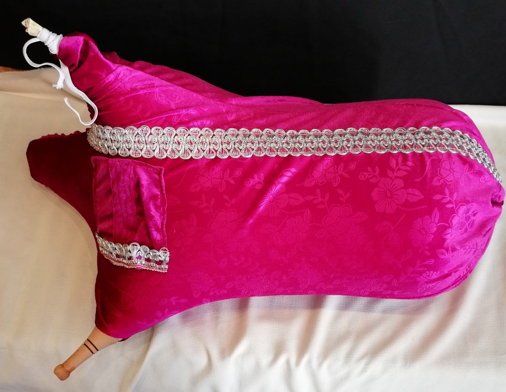 Réserve : Dimensions : long. 65 cm / larg. 25 cm Peau naturelle de chèvre sans poils Clavier : pas de clavier Hanche : bois / hêtre Mention spéciale : qualité professionnelle. Accessoire(s) fourni(s) : housse de la réserve / velours frappé fuchsia. Prix : 180 €+ frais de port supplémentaires pour les pays limitrophes