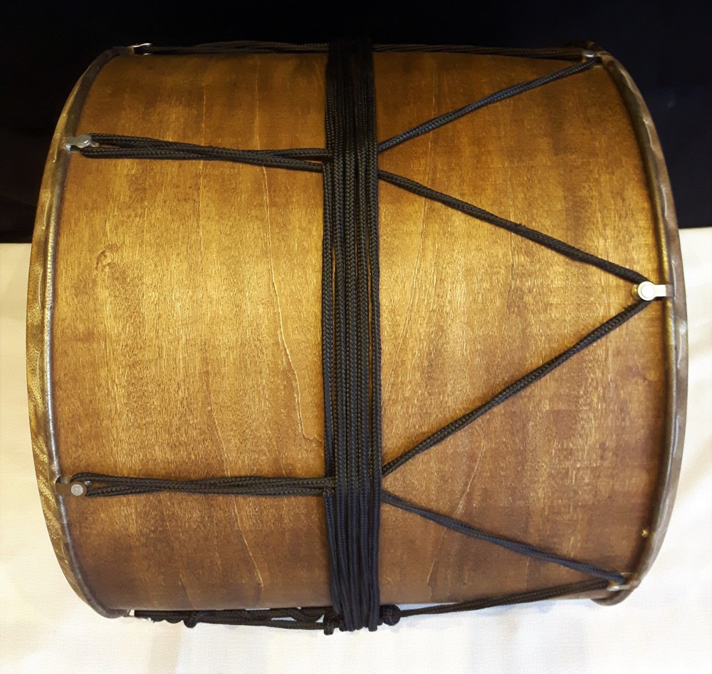Dimension : ∅ 40 cm/ Profondeur : 35 cm fût en peuplier (teintes huiles de lin). Accordage à corde (système professionnel).