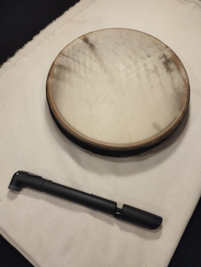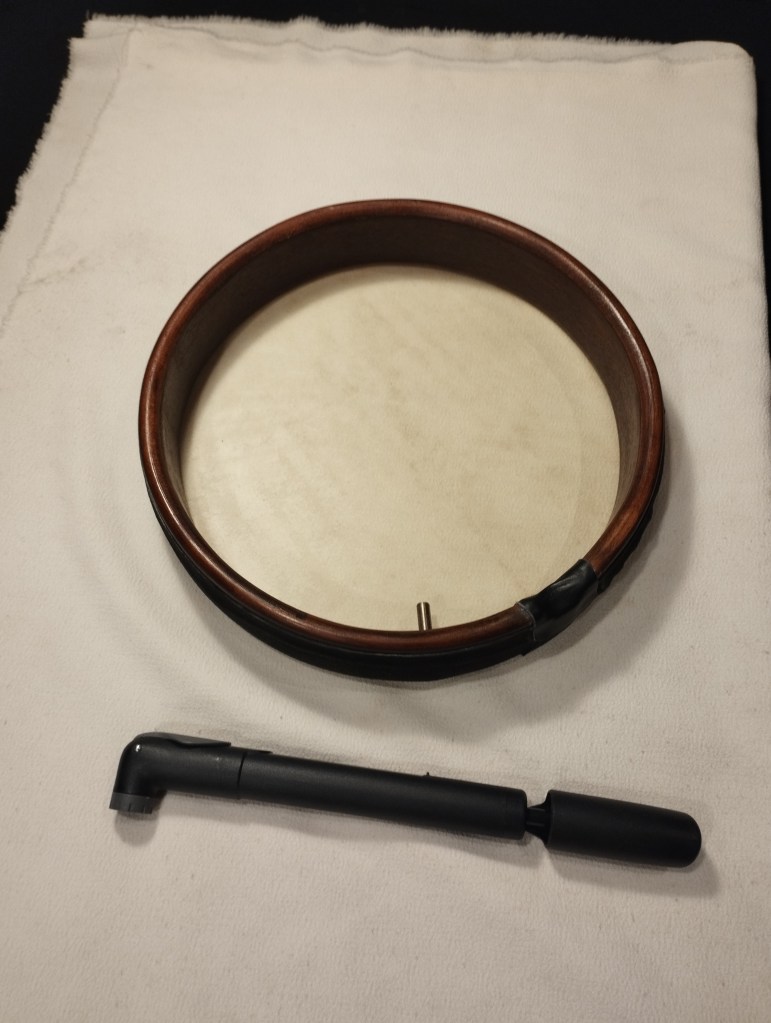 Ø 30 cm X 6 Def en bois d’ayous (vernis naturel) peau de chèvre demi-transparente Accordage à pompe. Housse et pompe fournies avec l’instrument. 216€ Frais de port : 14€ (tarifs indicatifs Colissimo La Poste)+ frais de ports supplémentaires pour les pays limitrophes