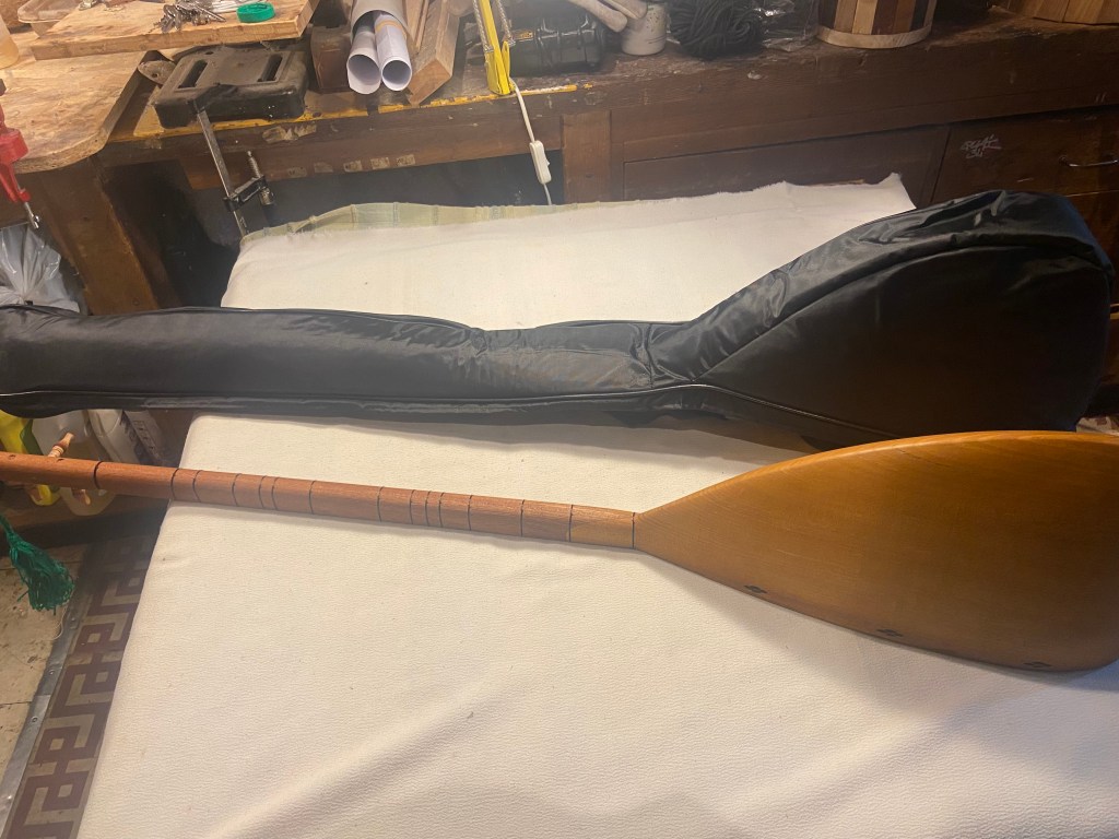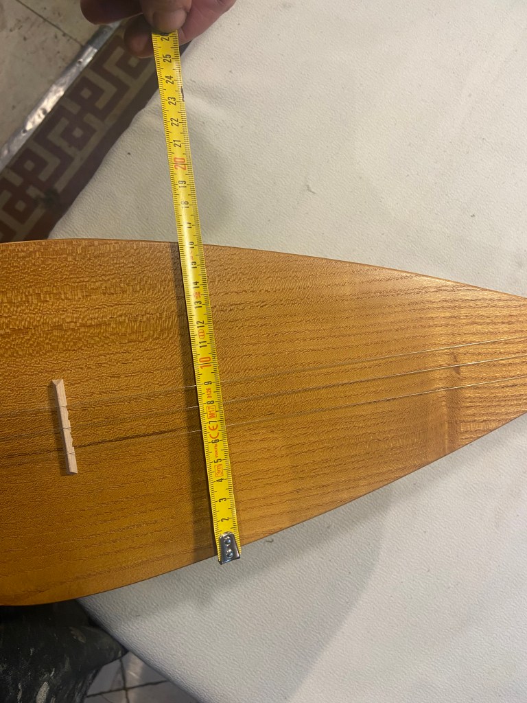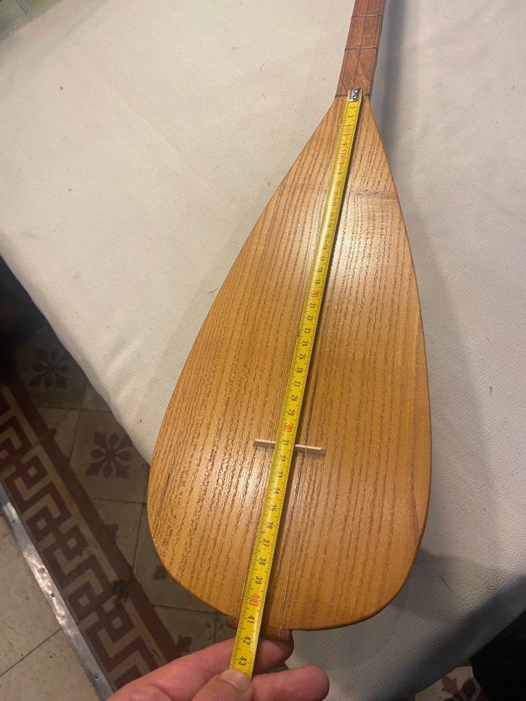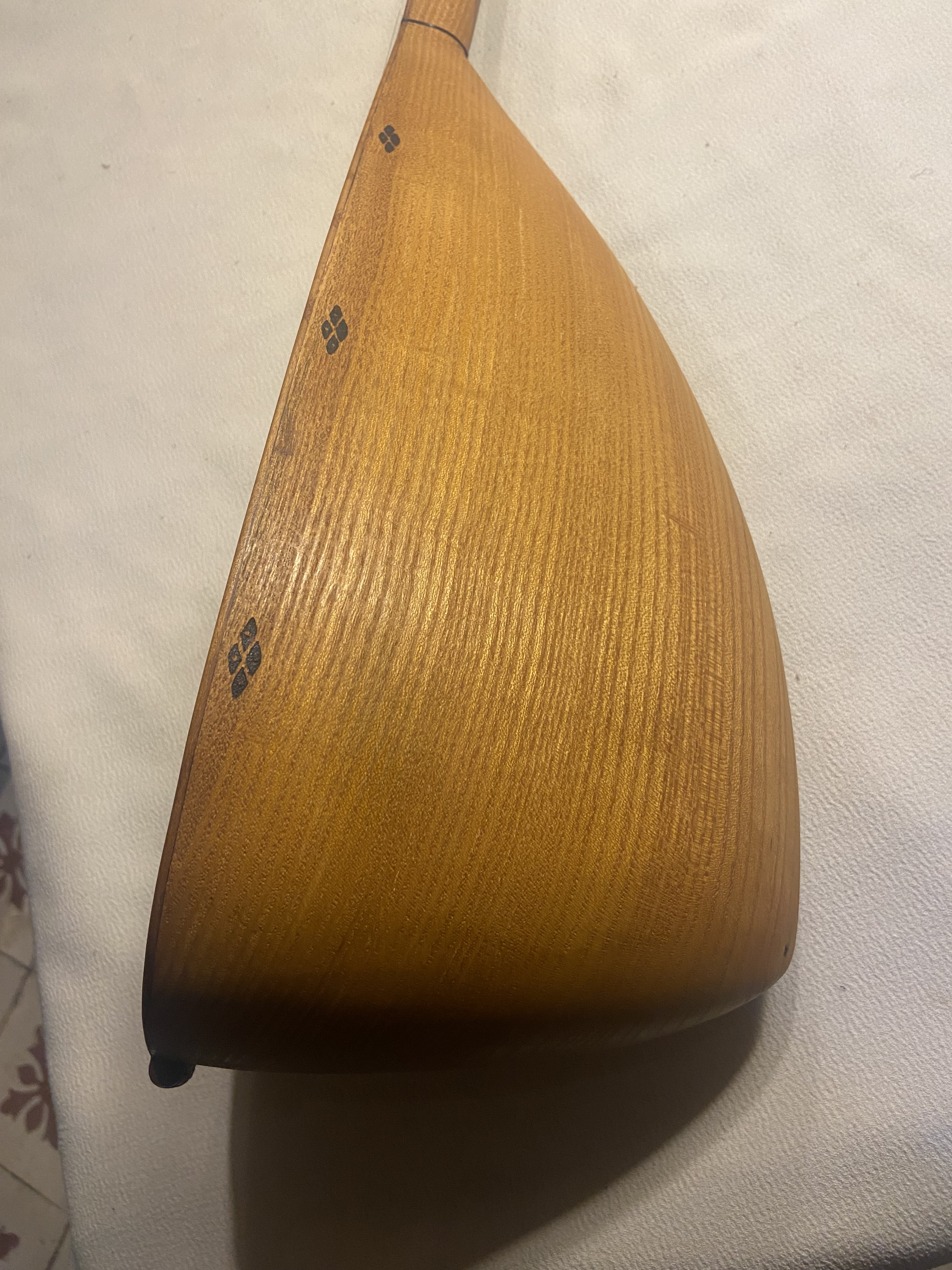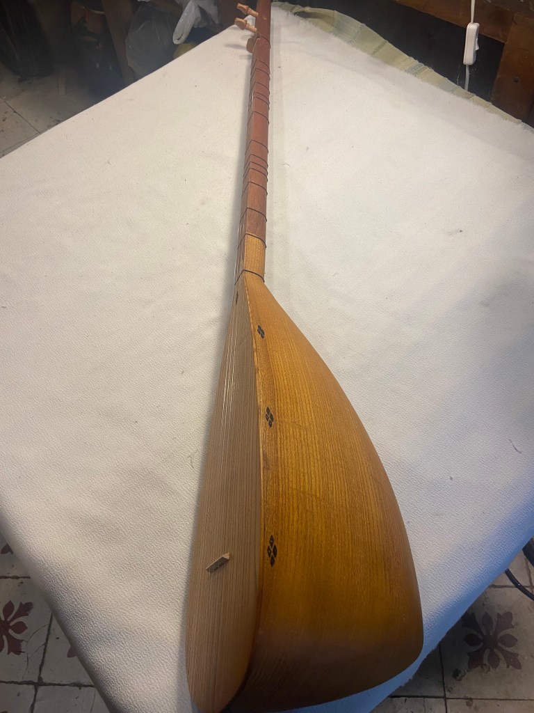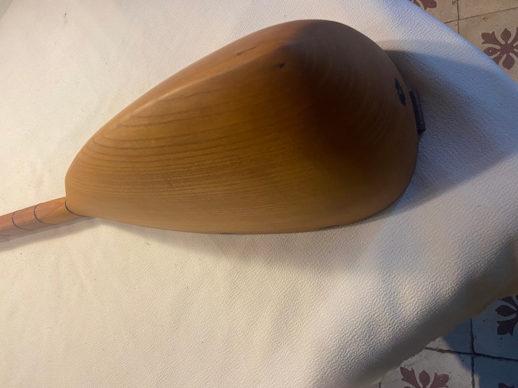 Luthier Turque MEHMET KARAKURT saz 3 cordes, 14 frets, caisse en bois de mûrier longueur totale de l’instrument 110 cm Taille de la caisse de résonance : L. 42 cm l. 17cm P. 20 cm Table en MURIE manche en érable clefs en Bois de Rose 490€ Frais de port : 22€ (tarifs indicatifs Colissimo La Poste)+