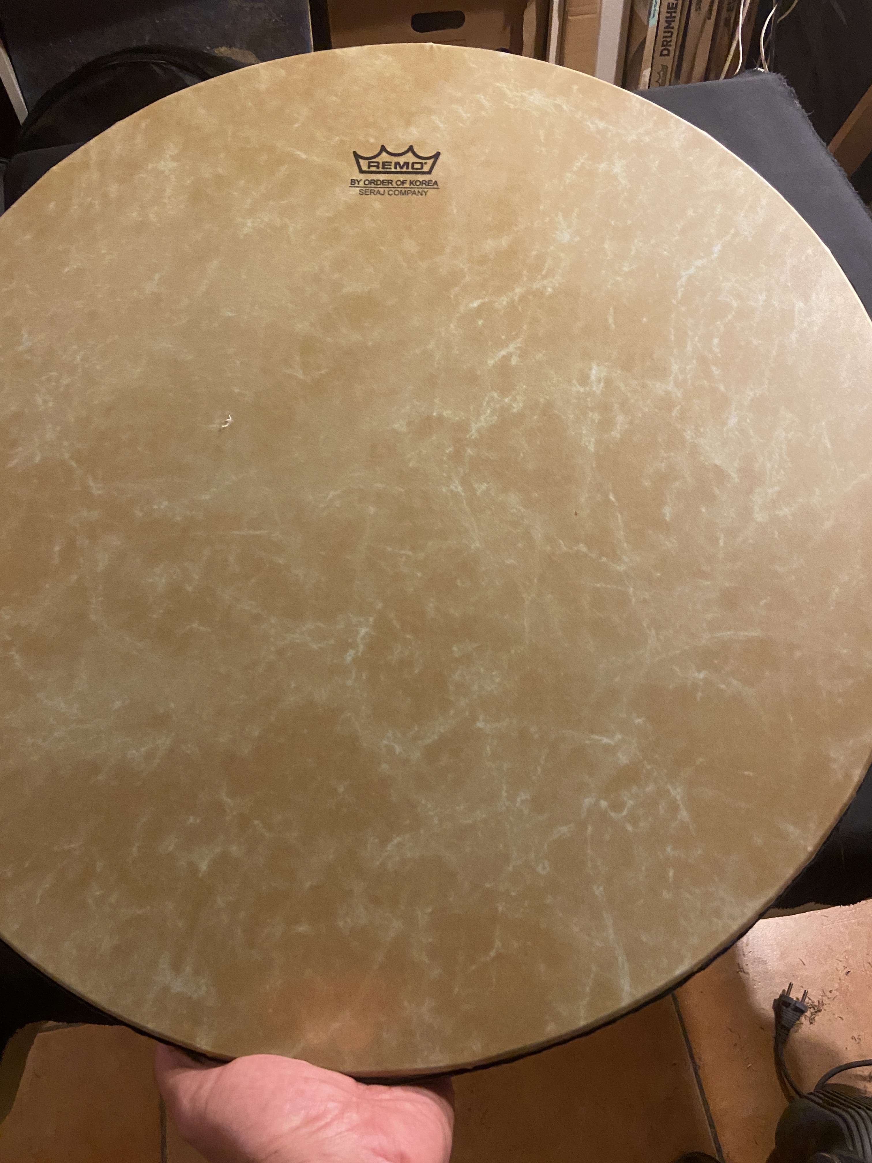 🥁 DAF – Remo (Erbane synthétique) 🇮🇷 Fabrication iranienne – qualité moyenne ⌀ 54 cm | ↔ 5 cm 🎵 Peau : synthétique (pré-accordée, stable) 🌲 Bois : imitation ⚖️ ≈ 800 g (léger) 🔧 Sans système d’accordage (pré-accordé) 🎒 Vendu avec housse 💶 115 € (+ 10 € port / suppl. pays limitrophes)