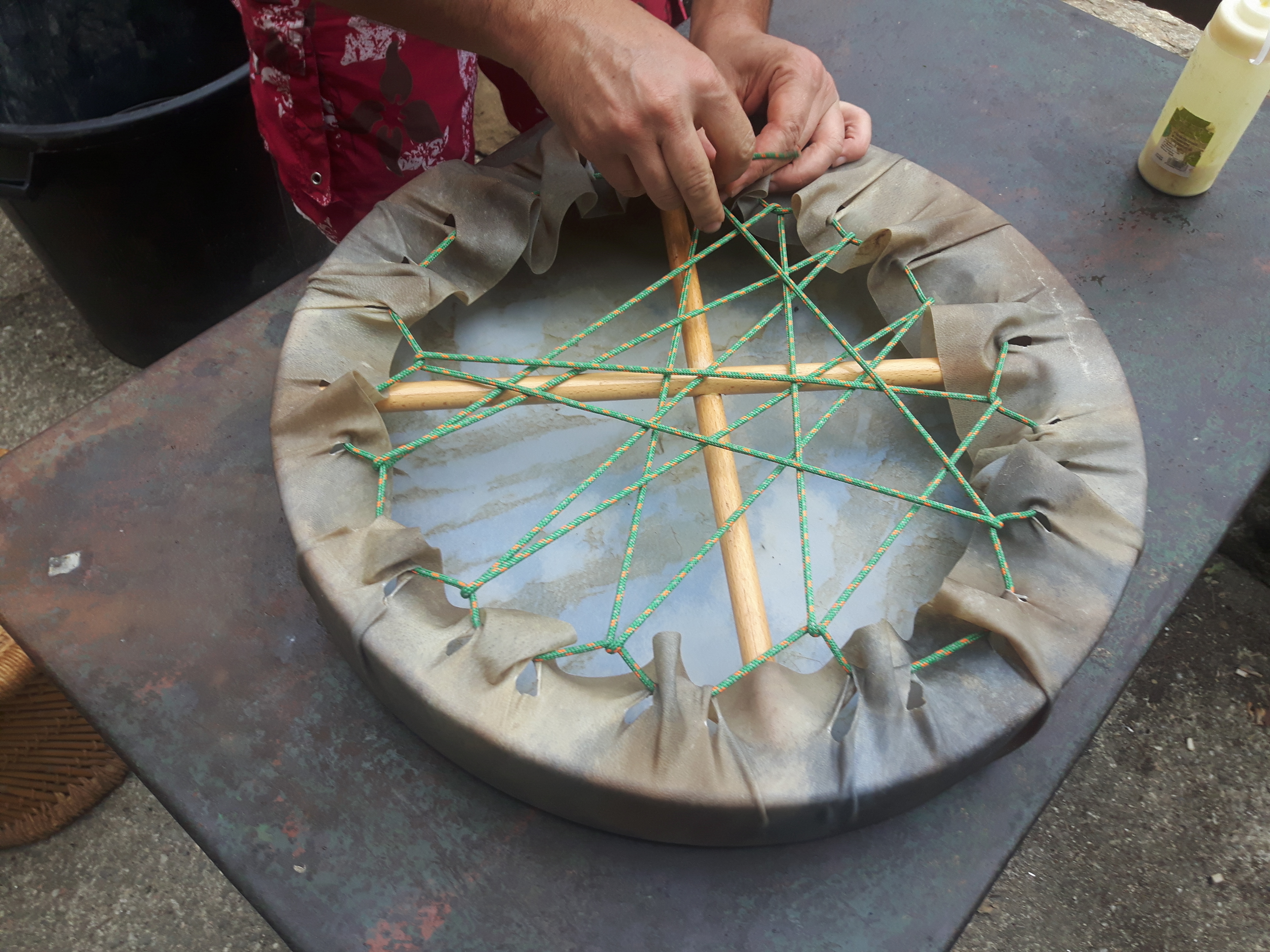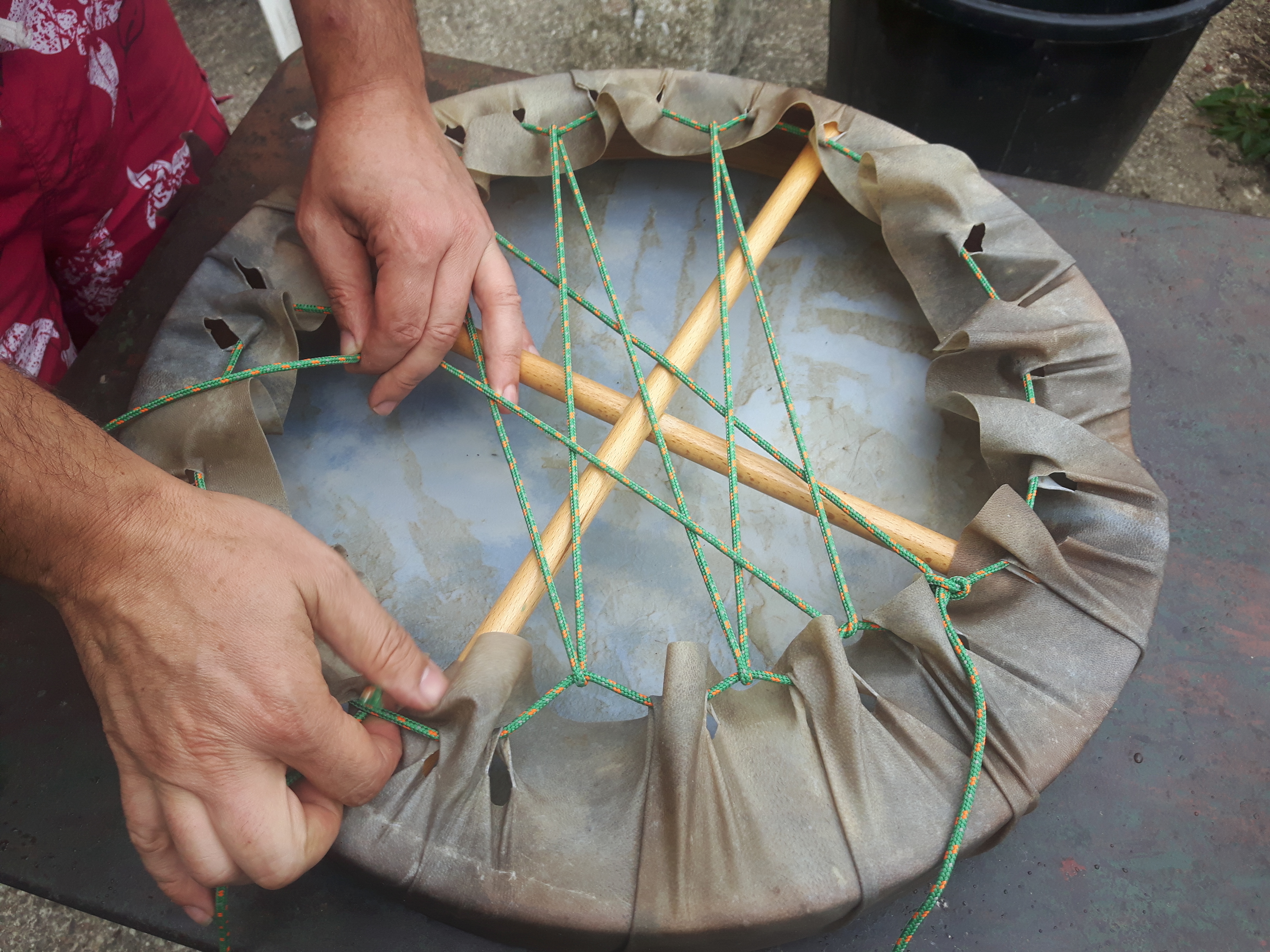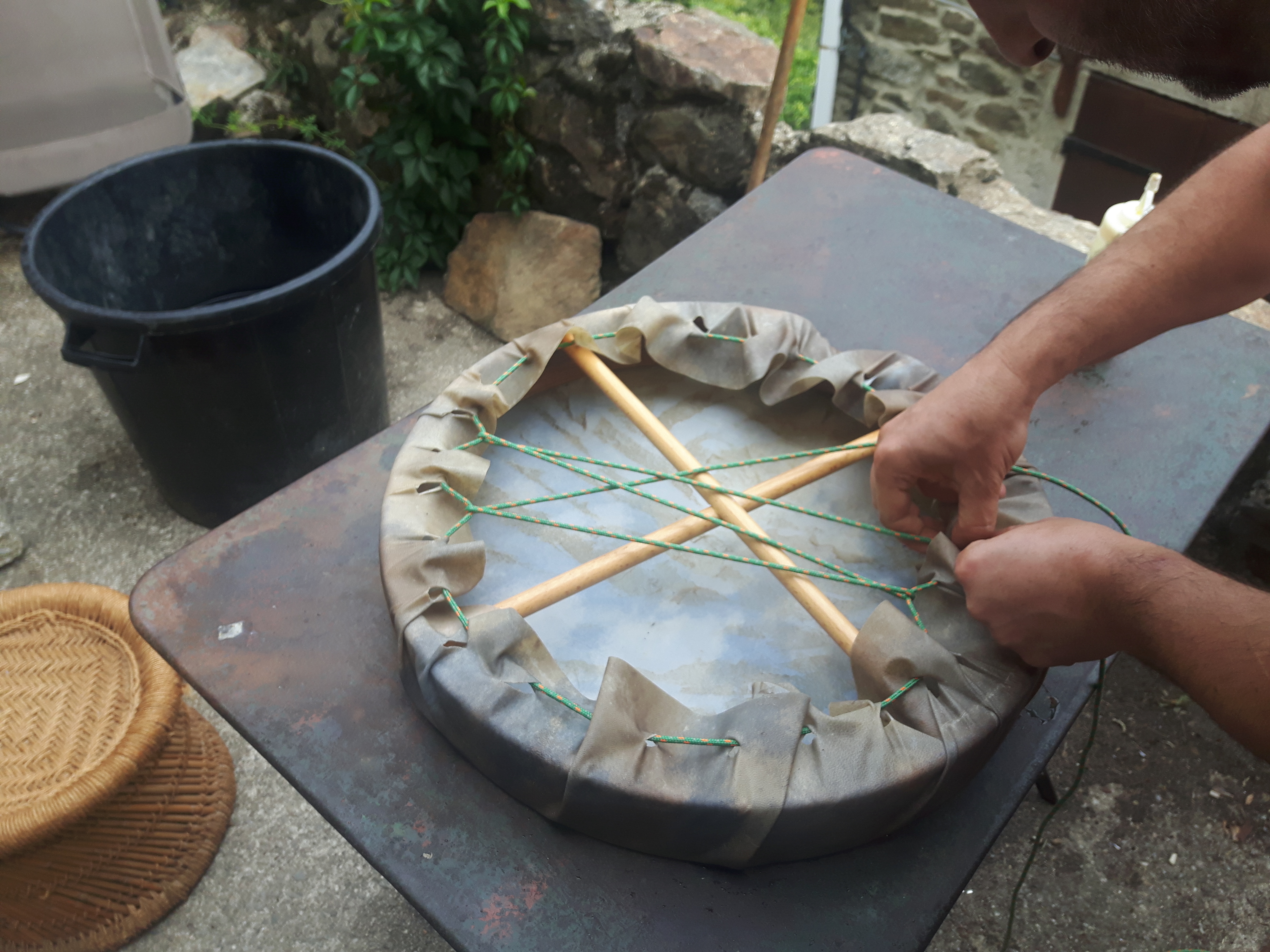 Davul accordage en corde peau de chèvre 51 cm dimension largeur 35 cm corps en hêtre